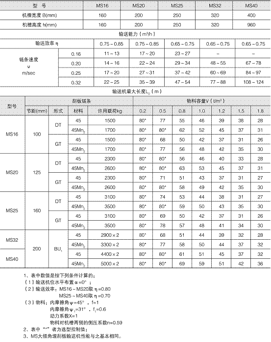 在水平输送时,物料受到刮板链条在运动方向的推力,使物料被挤压,在物料间产生了内摩擦力,又由于机壳是封闭的,物料又与机壳、刮板链间产生外摩擦,当两种摩擦合力大于物料自重而形成的推移力,促使物料向前或向上输送。