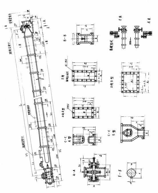 2、刮板链条为DV1型,采用内向布置,部面图中均未表示。
